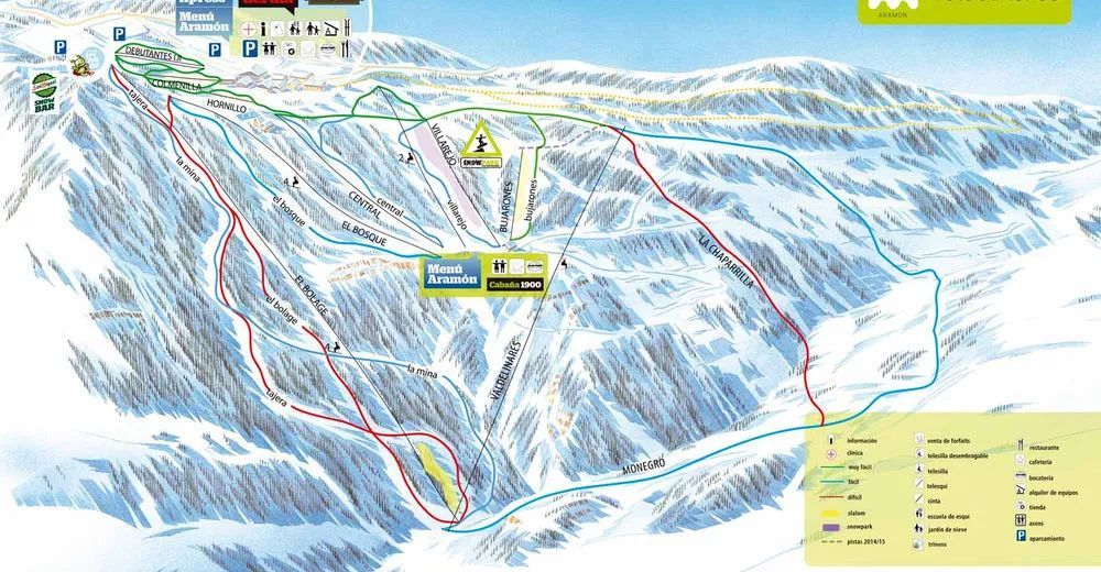 VALDELINARES 滑雪场介绍 Valderinares位于海拔1,700 m,Sierra de Gúdar的中心。是西班牙最高的城市之一。Valdelinares 滑雪场总17 Km,分为 16 个轨道。拥有最现代化的造雪系统,保证整个冬季都有雪。 PLAN 1 NO ESQUIADOR 行程价格:25欧/人起 行程包含 •往返大巴 •旅行保险 •随行导游 PLAN 2 BUS BLANCO 行程价格:48欧/人起 行程包含 •往返大巴 •滑雪场通行证 •旅行保险 •随行导游 PLAN 3 A TU AIRE 行程价格:63欧/人起 行程包含 •往返大巴 •滑雪场通行证 •滑雪设备租赁 •旅行保险 •随行导游 PLAN 4 APRENDE A ESQUIAR 行程价格:73欧/人起 行程包含 •往返大巴 •滑雪场通行证 •滑雪设备租赁 •3小时的滑雪课 •旅行保险 •随行导游 PLAN 5 TRINEOS 行程价格 儿童:38欧/人起 、成人43欧/人起 行程包含 •往返大巴 •可入雪橇区 •滑雪板 •3小时的滑雪课 •Aramon 套餐 •随行导游 发车日期 12月 28,29号 2022年1月 4,8,9,15,16,22,23,29,30号 2022年2月 5,6,12,13,19,20,26,27号 2022年3月 5,6,12,13号 出发地点与时间: 瓦伦西亚早上7:00出发 ,在Palau de la Música前面集合。 Sagunto早上7:30出发, 在Hotel Azahar前集合(离RENFE火车站50米的距离)。 温馨提示: 旅客需提前20分钟抵达集合地点 。 滑雪保险价格为6欧/人,不包括在旅行保险中。